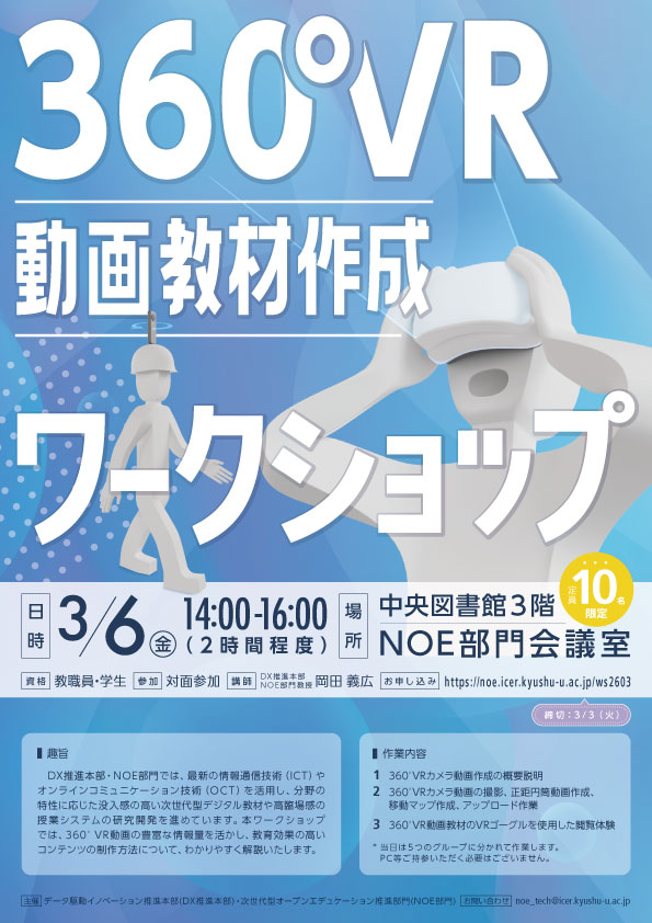 「360°VR動画教材作成ワークショップ」2026/3/6(金)